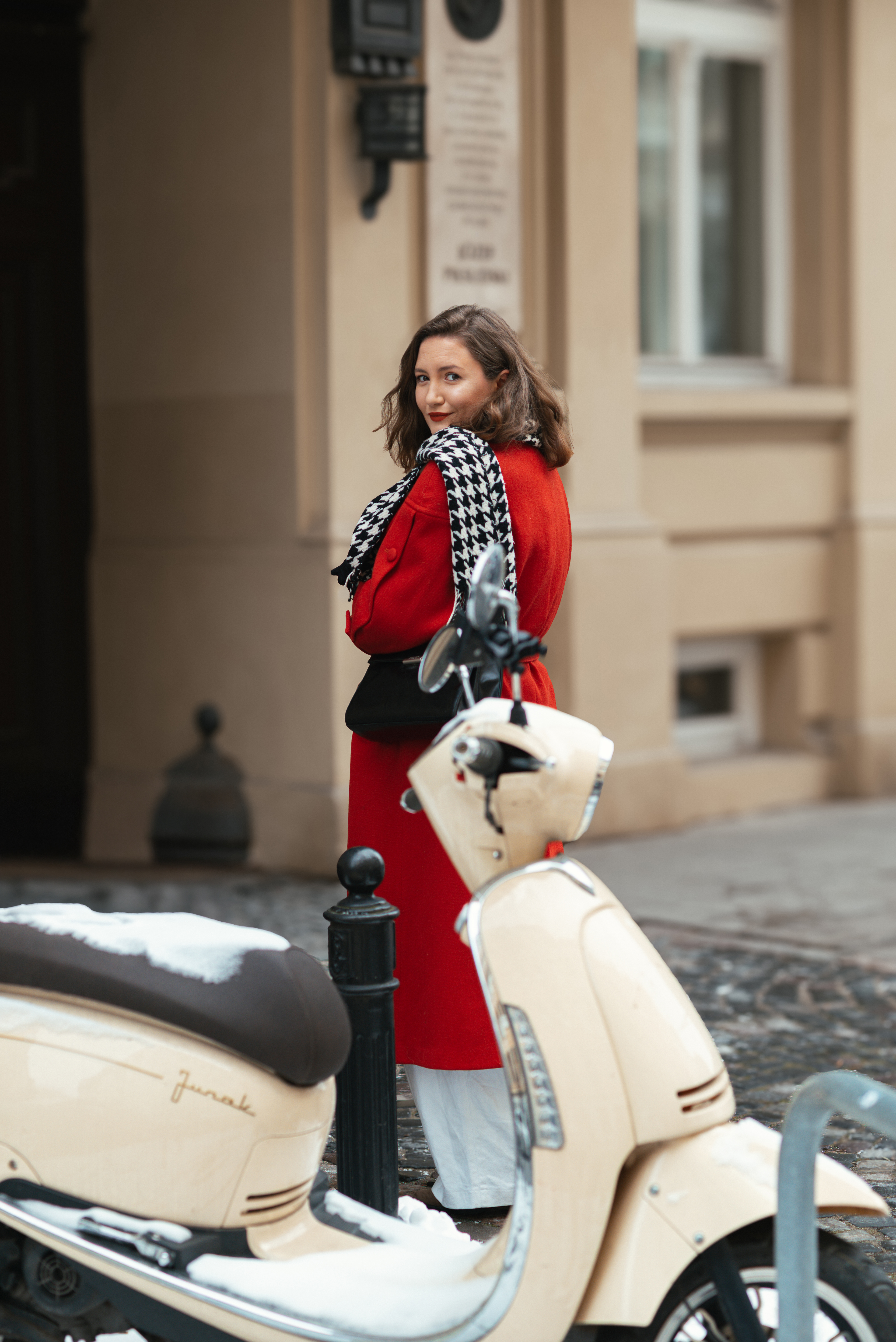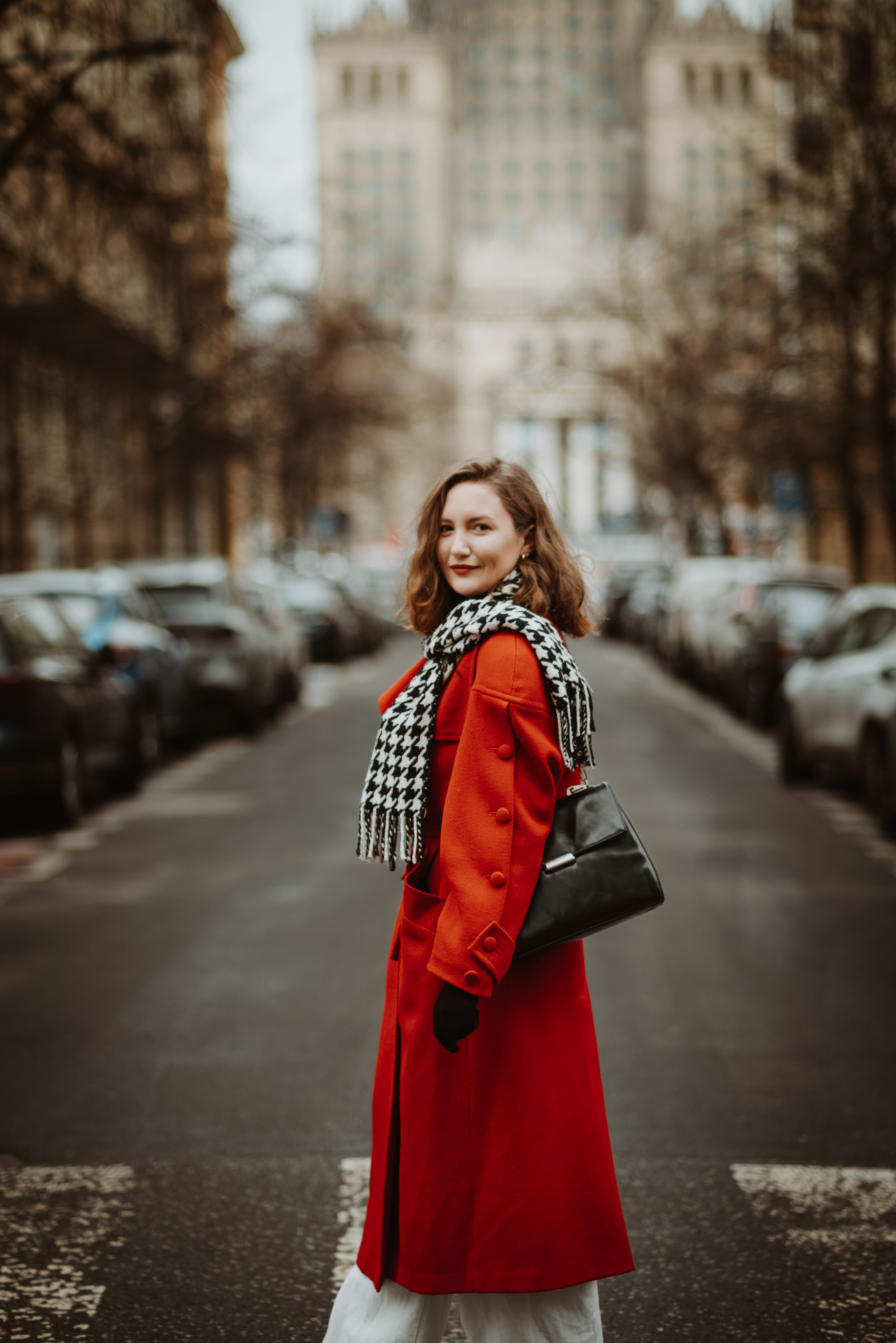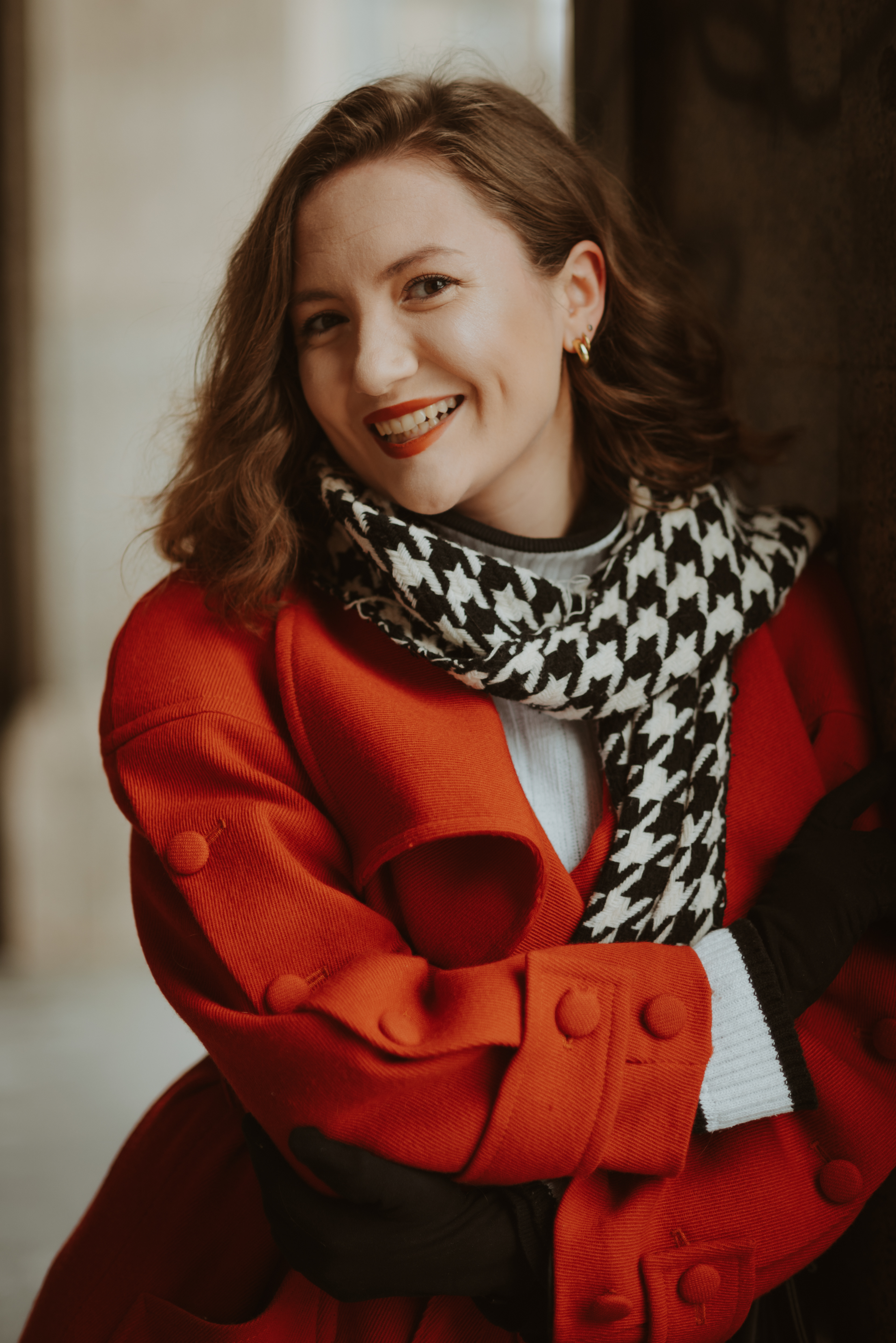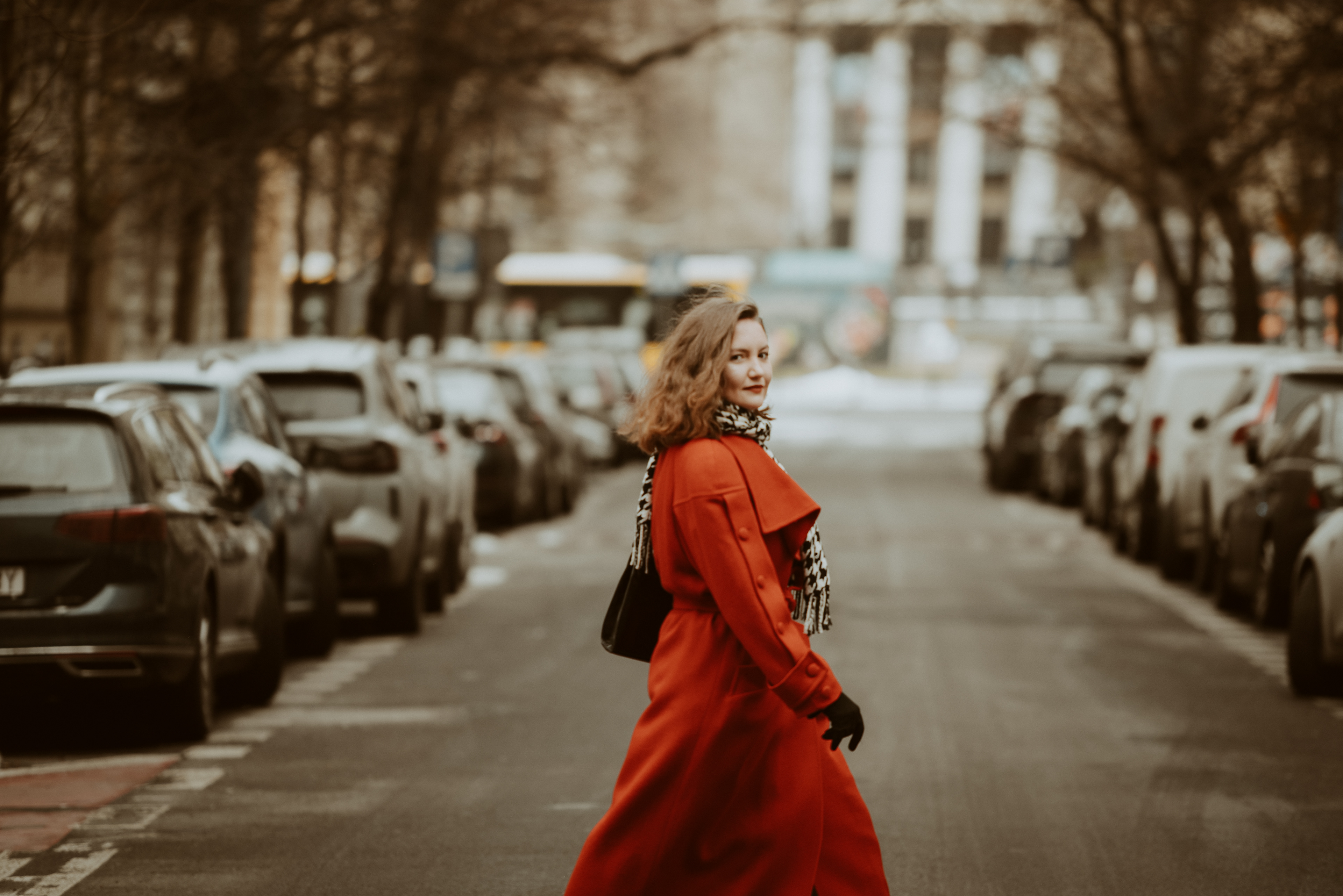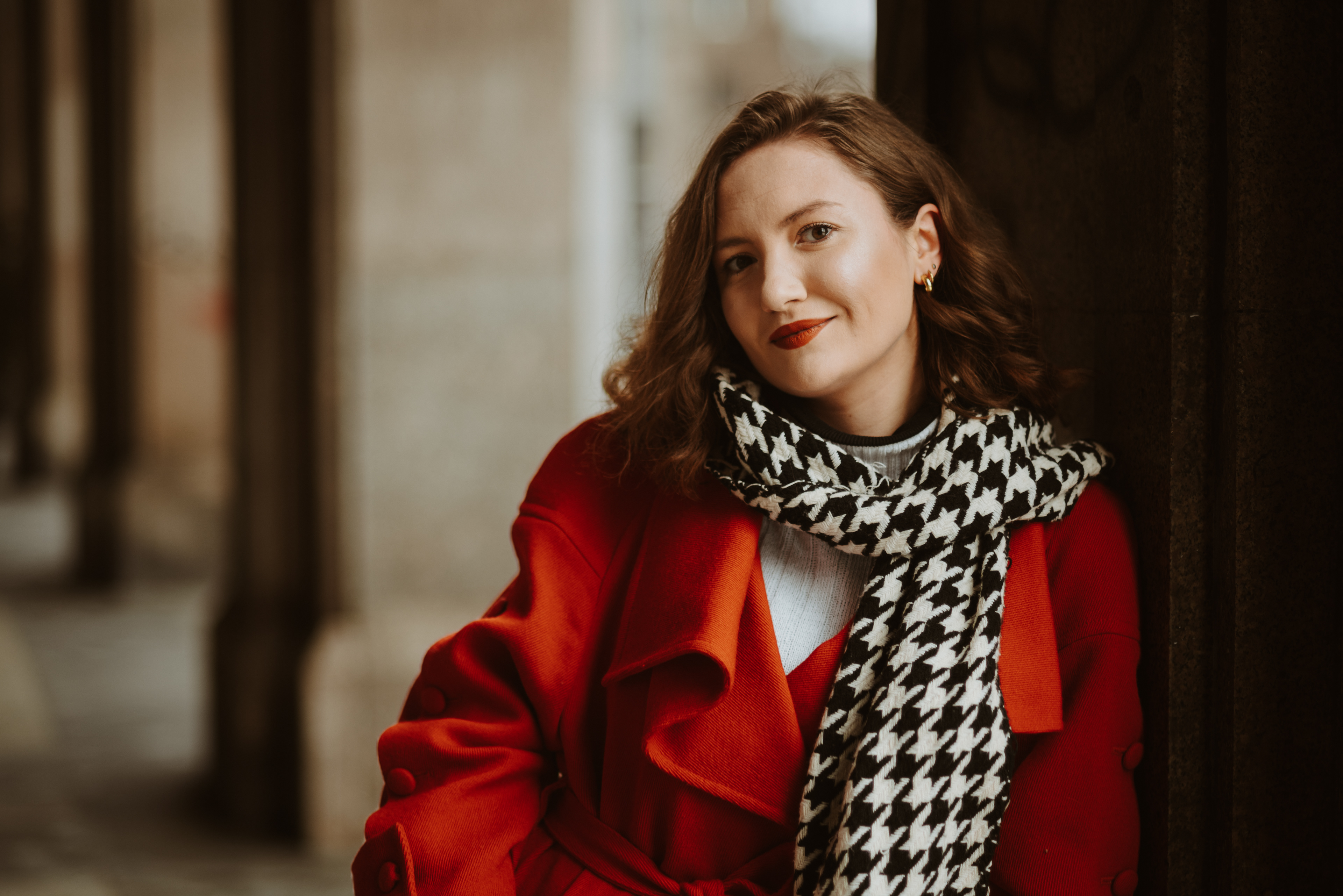 Ta sesja to trochę opowieść o Agnieszce, a trochę o tym, jak widzę kobiecość w miejskiej przestrzeni. W tej kobiecości jest spokój, ale też wyrazistość. To nieoczywista siła – taka, która nie potrzebuje krzyku. Agnieszka miała na sobie czerwony płaszcz, który nie tylko przyciągał wzrok, ale też pięknie kontrastował z szarością miasta i jego warstwami historii. Każde zdjęcie to był jak stop-klatka z filmu – opowieść, która się nie narzuca, ale zostaje.