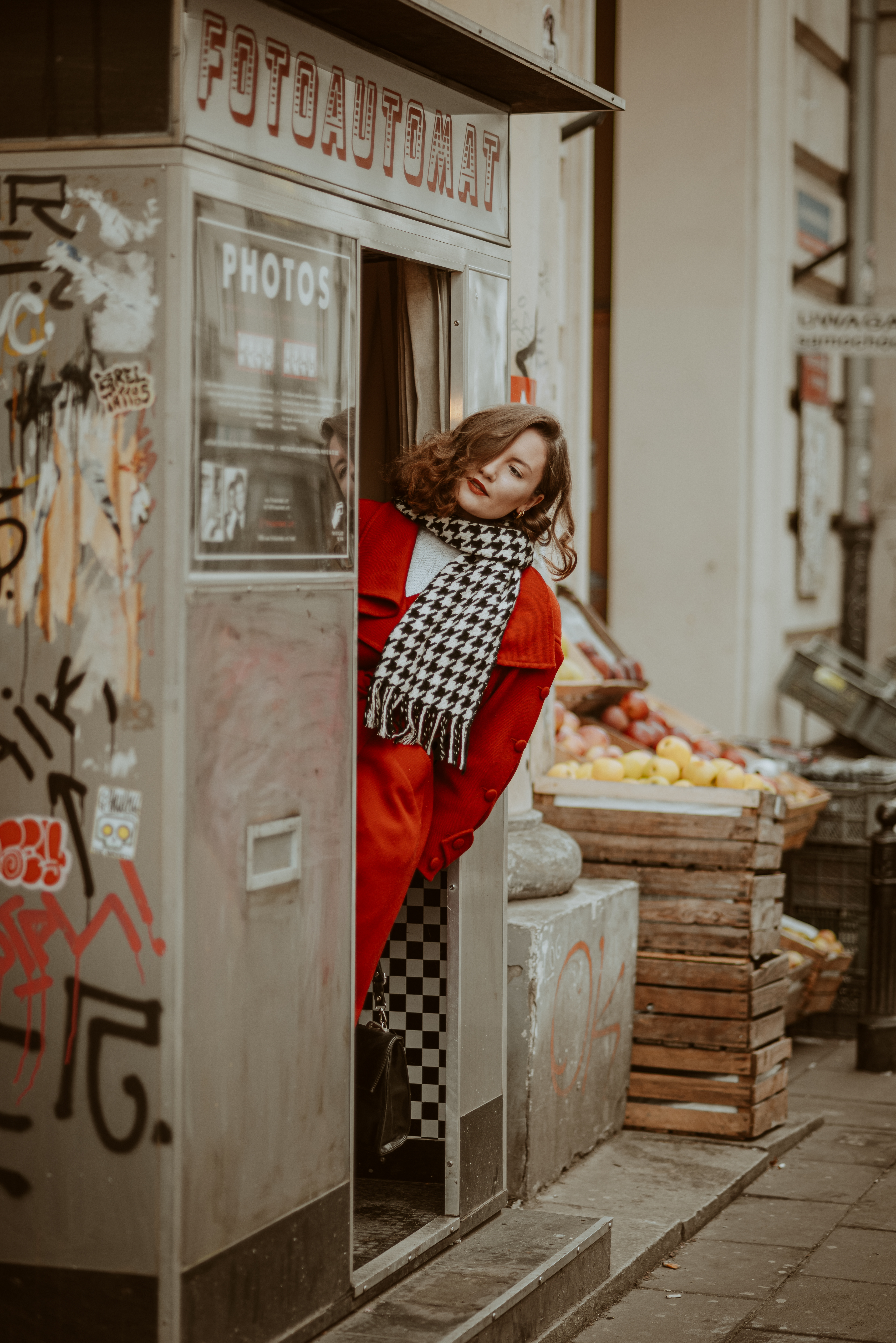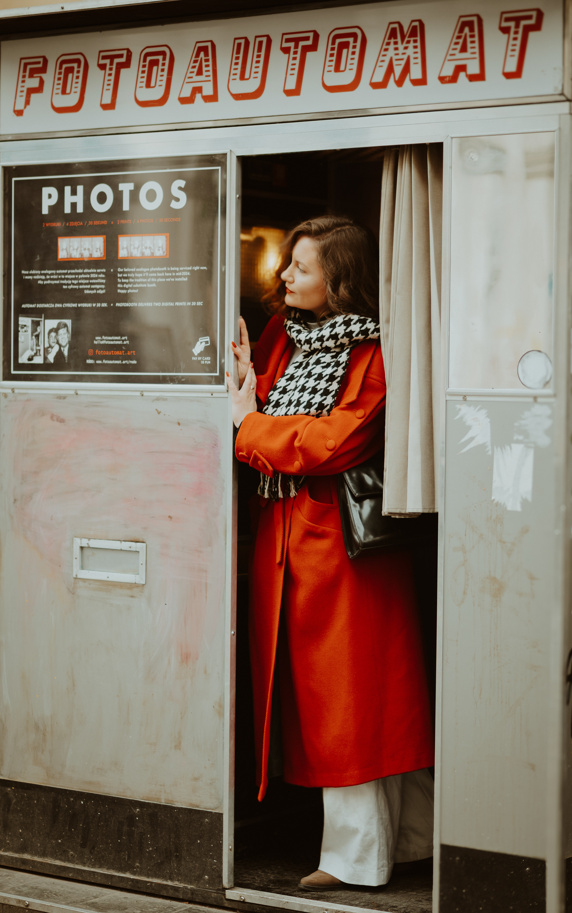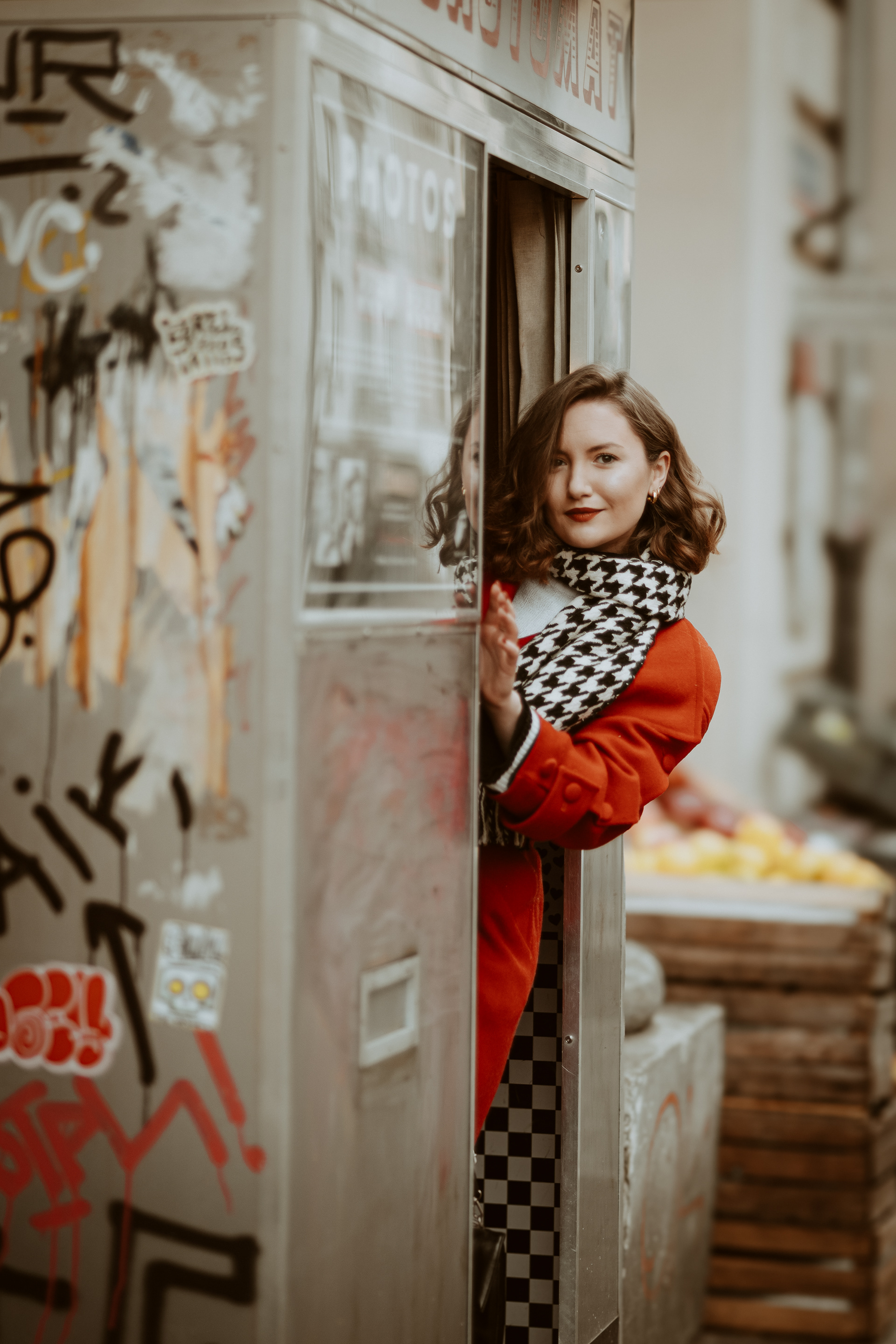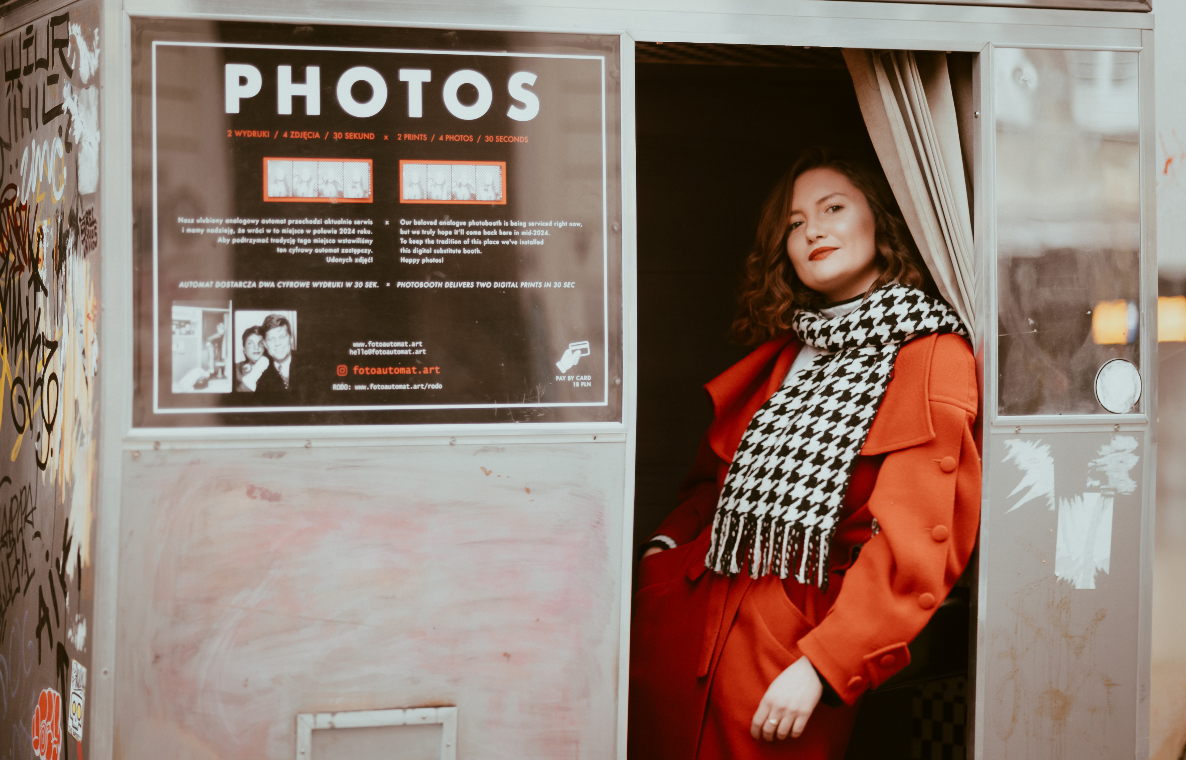 Kobieca, klimatyczna sesja z Agnieszką to spacer przez zimową Warszawę — z przystankiem w retro fotobudce, między straganami i neonami w centrum miasta. Czerwony płaszcz, pepitka i miejski zgiełk w tle stworzyły zestaw idealny – klasyka z odrobiną vintage'u i miejskiego luzu.
