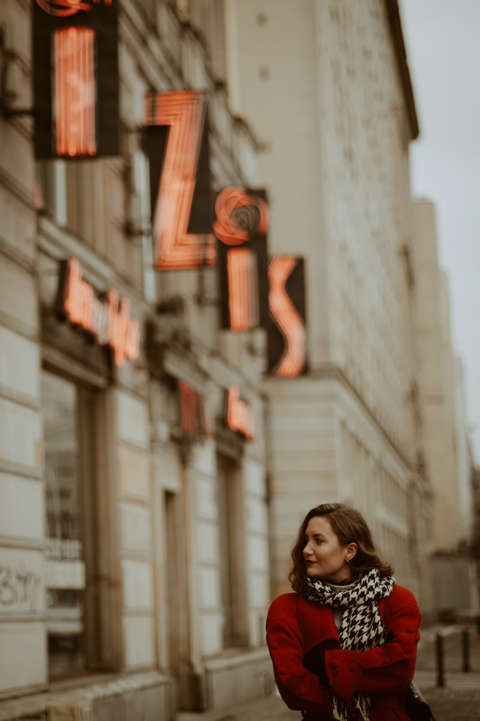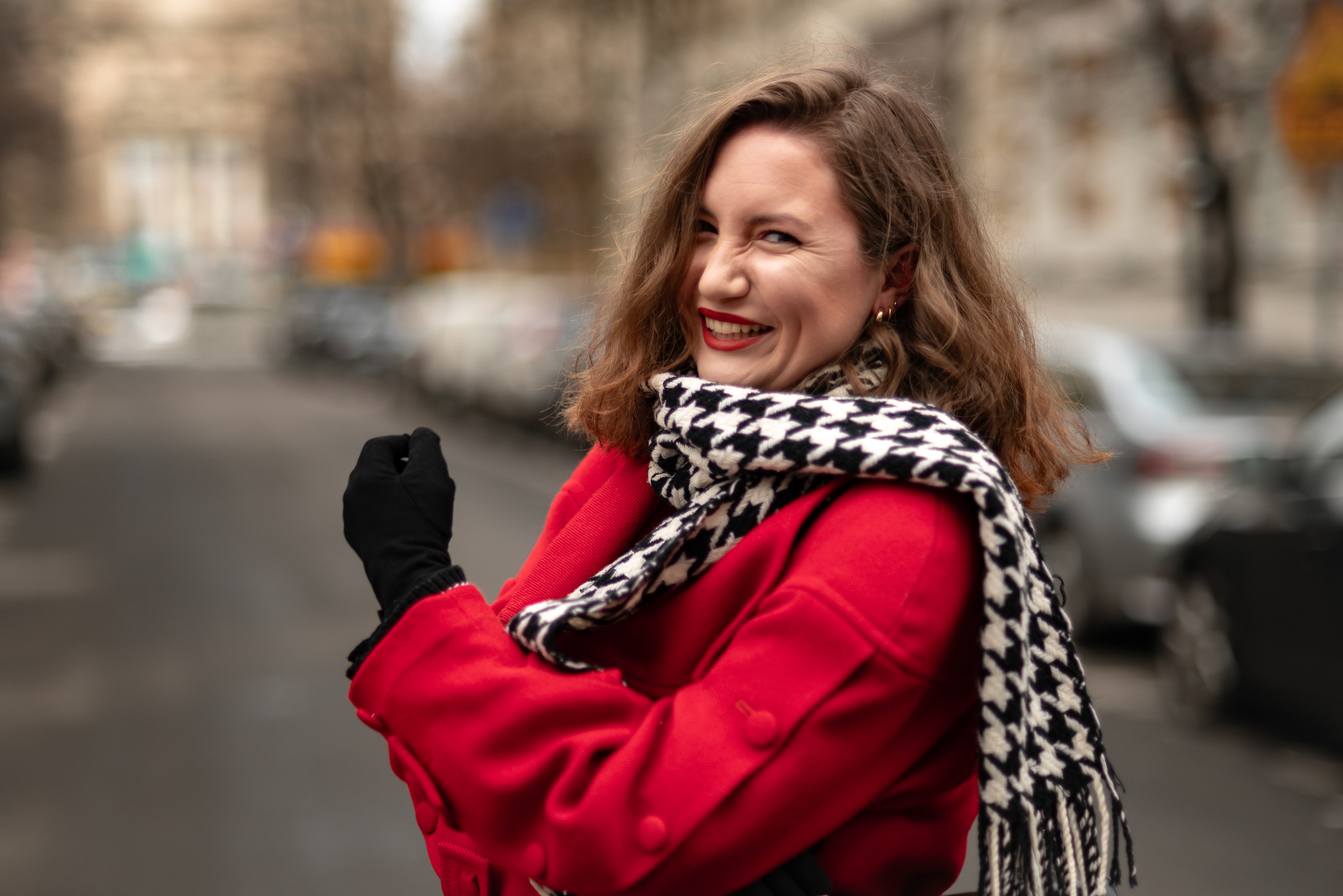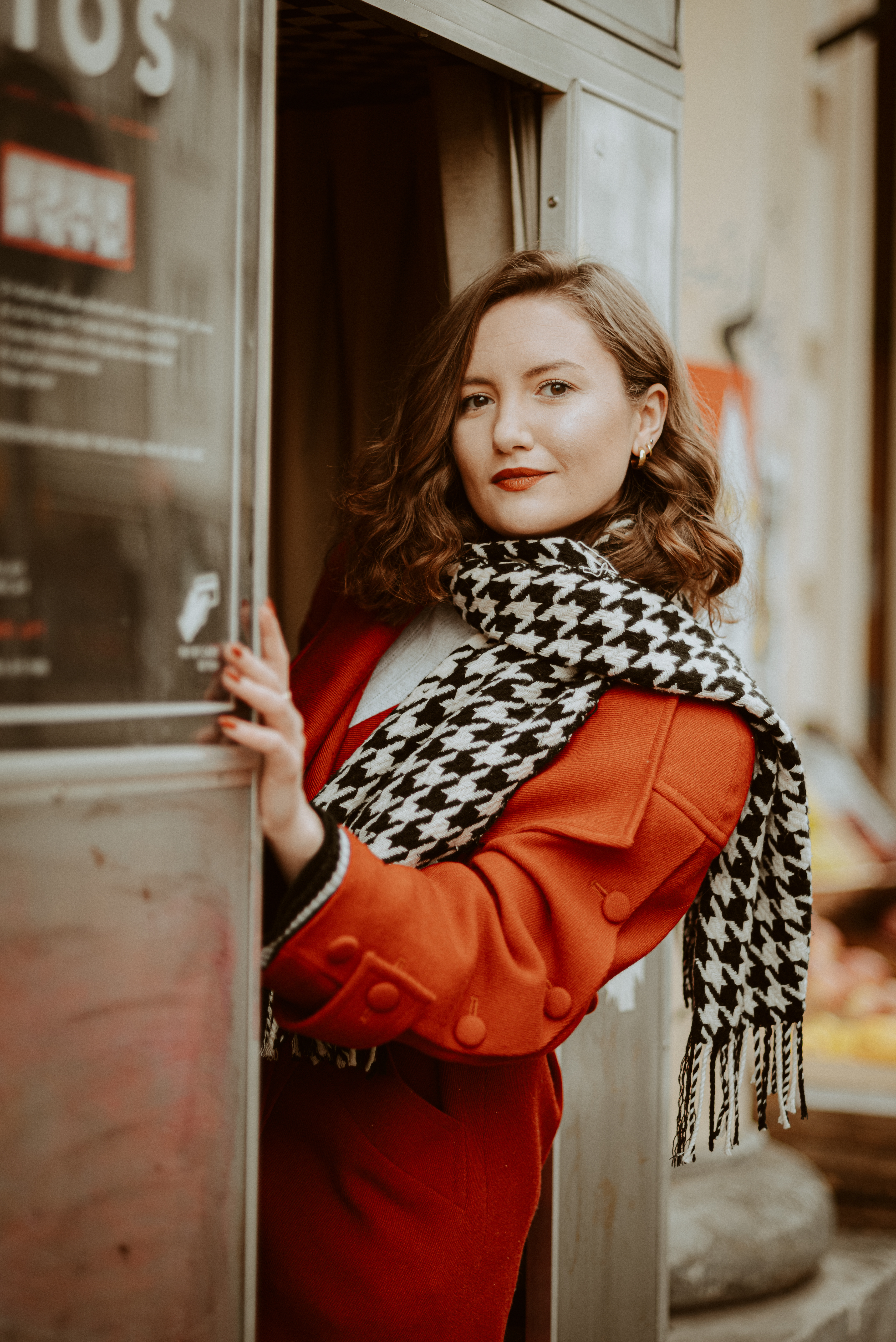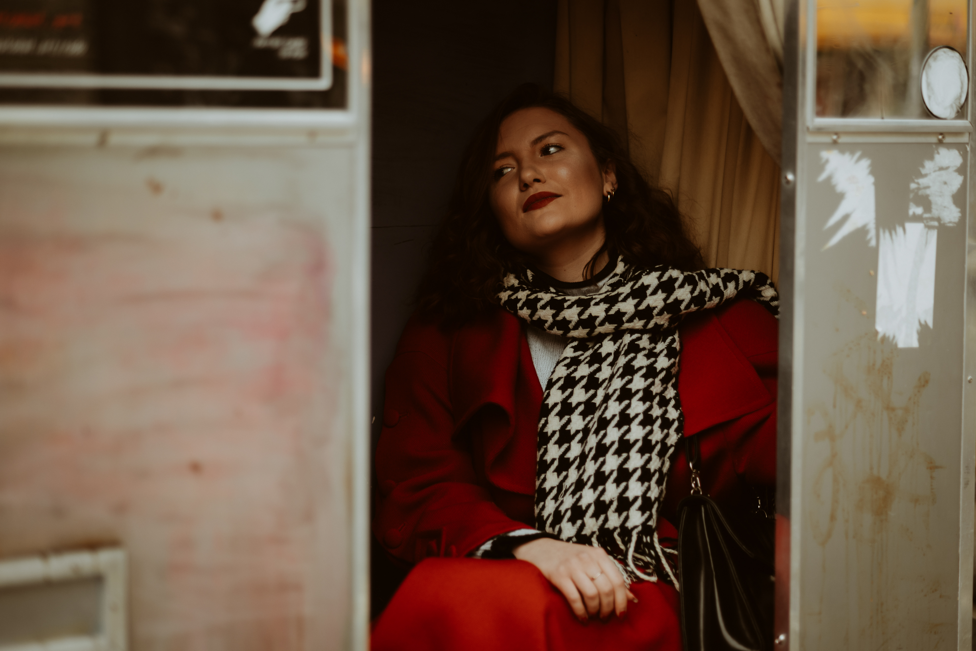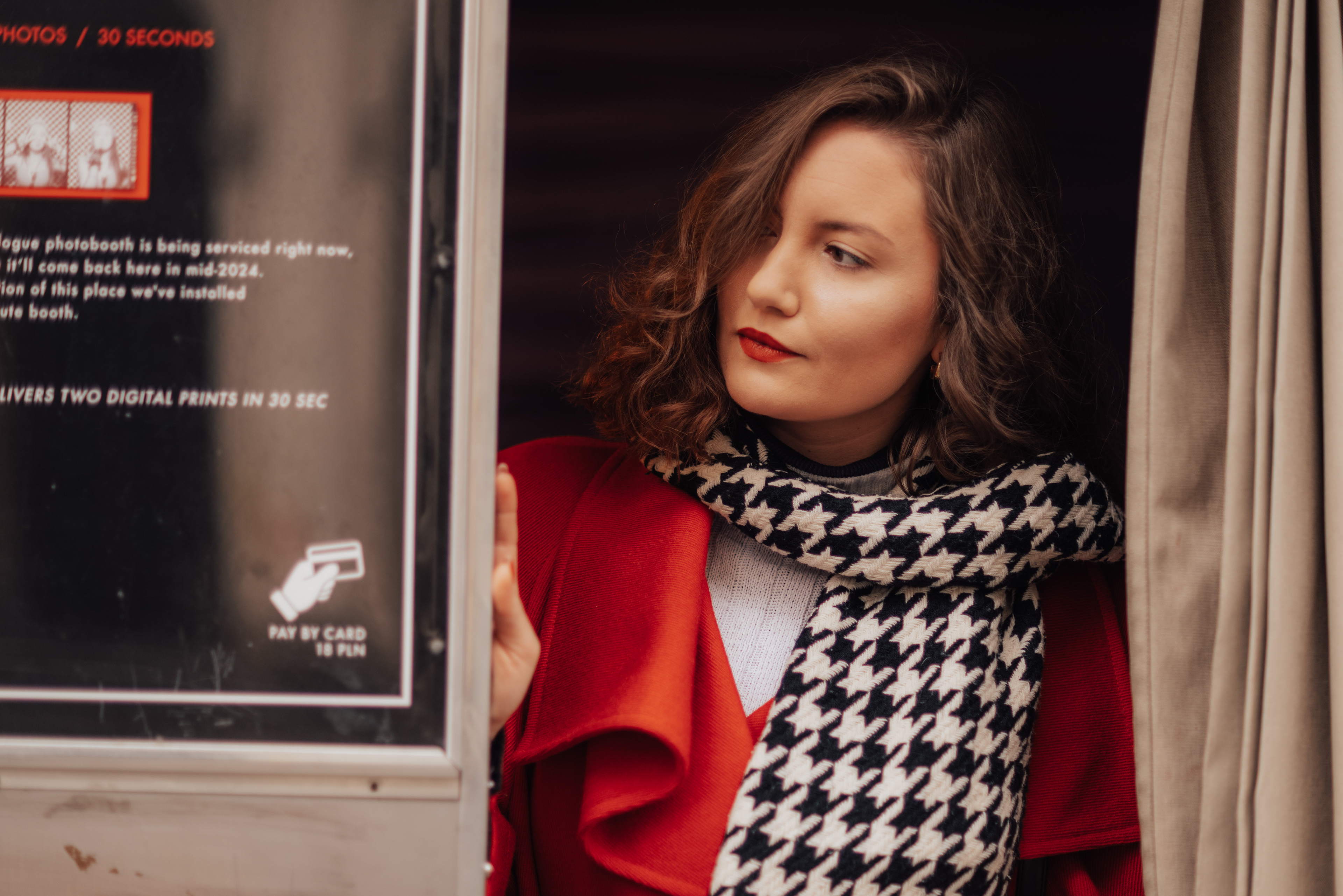Kobieca, klimatyczna sesja z Agnieszką to spacer przez zimową Warszawę — z przystankiem w retro fotobudce, między straganami i neonami w centrum miasta. Czerwony płaszcz, pepitka i miejski zgiełk w tle stworzyły zestaw idealny – klasyka z odrobiną vintage'u i miejskiego luzu.