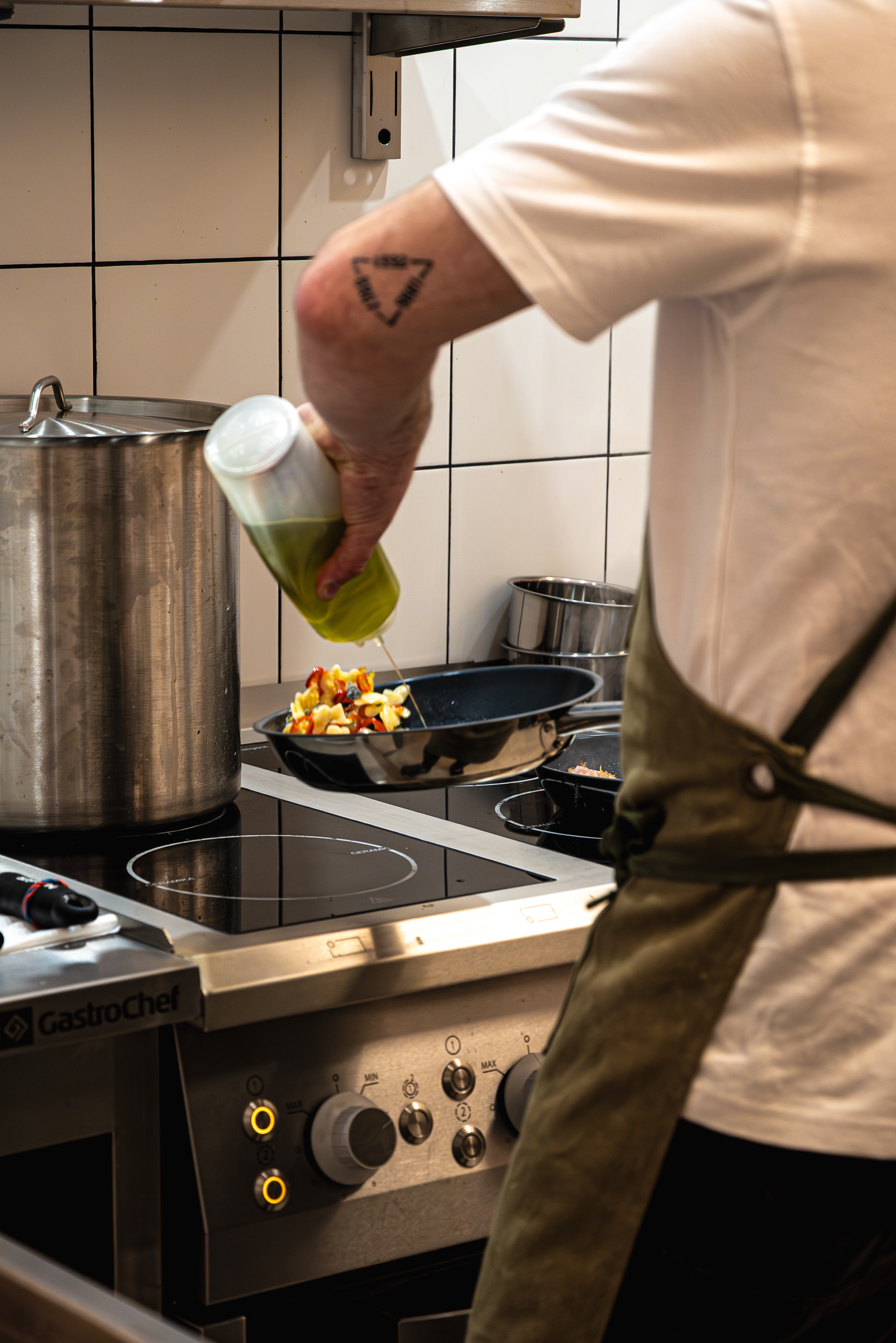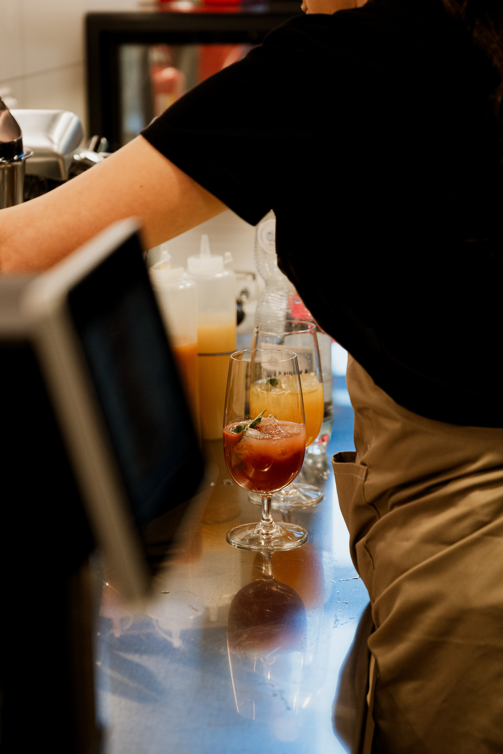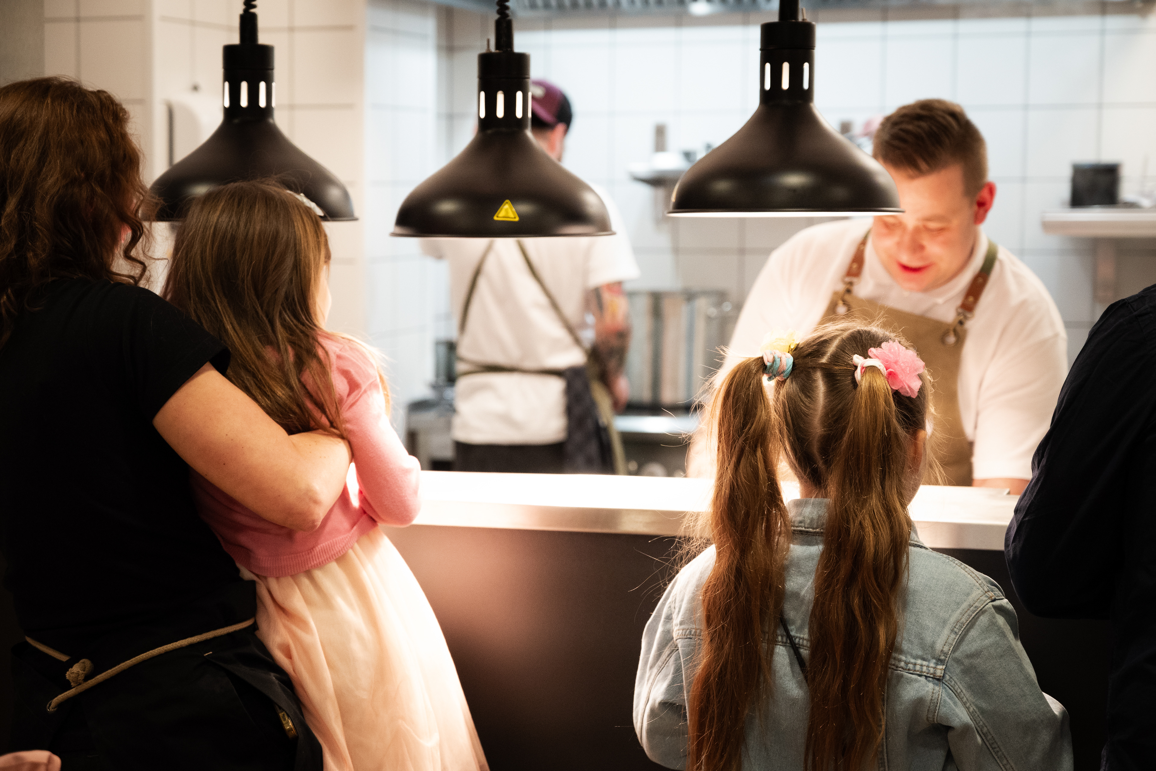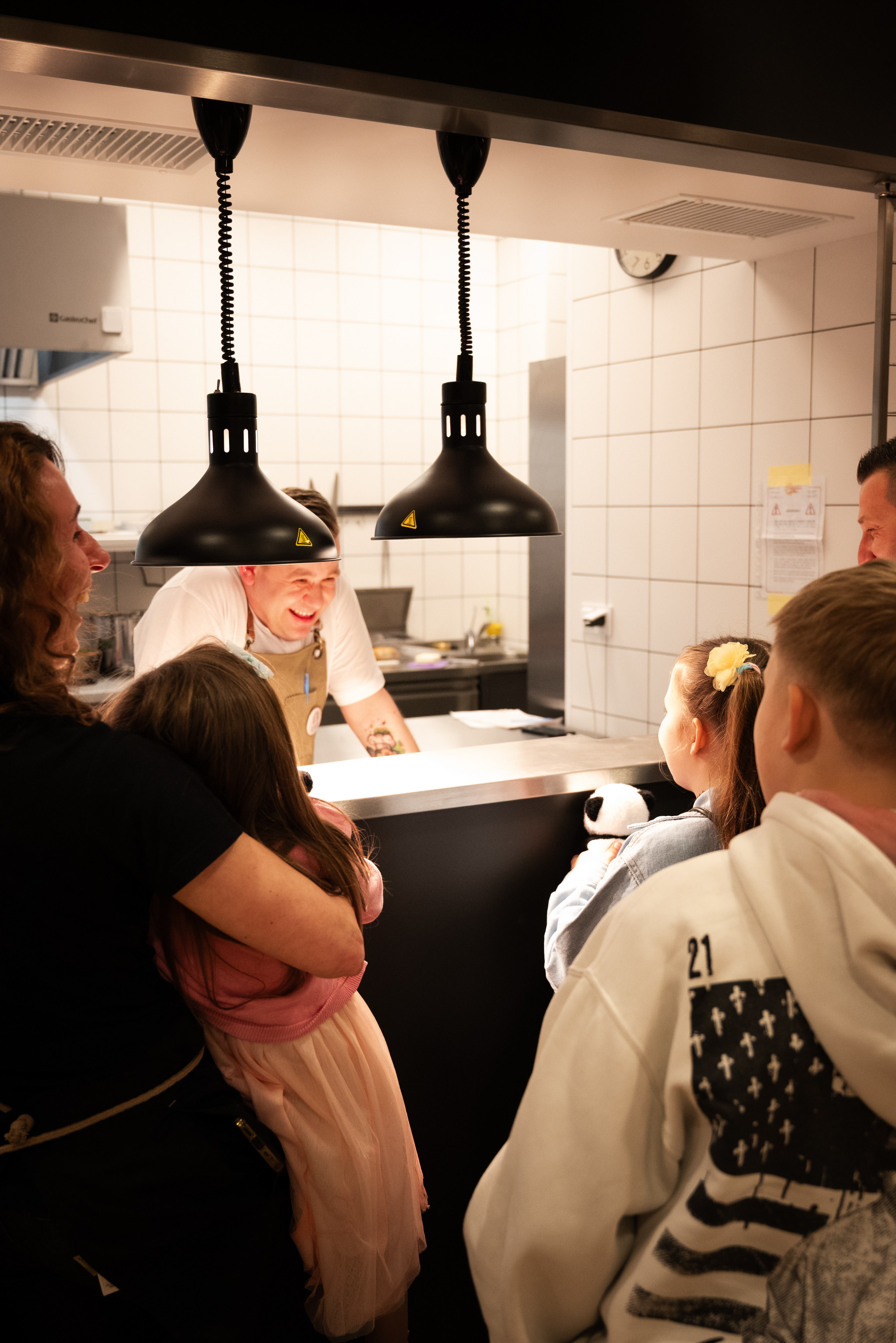 Jest ruch, zmienne światło, tempo pracy kuchni, ludzie wokół.