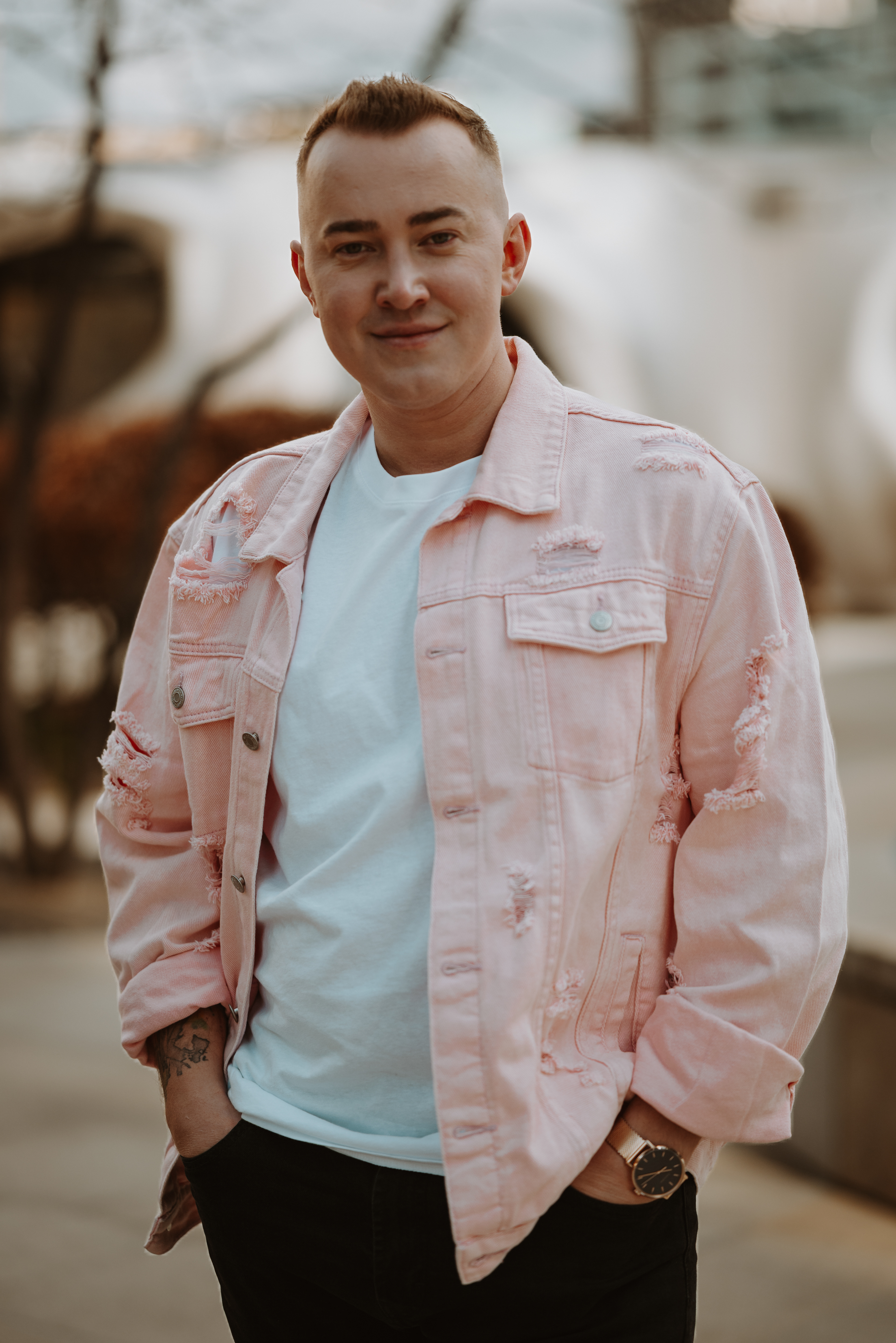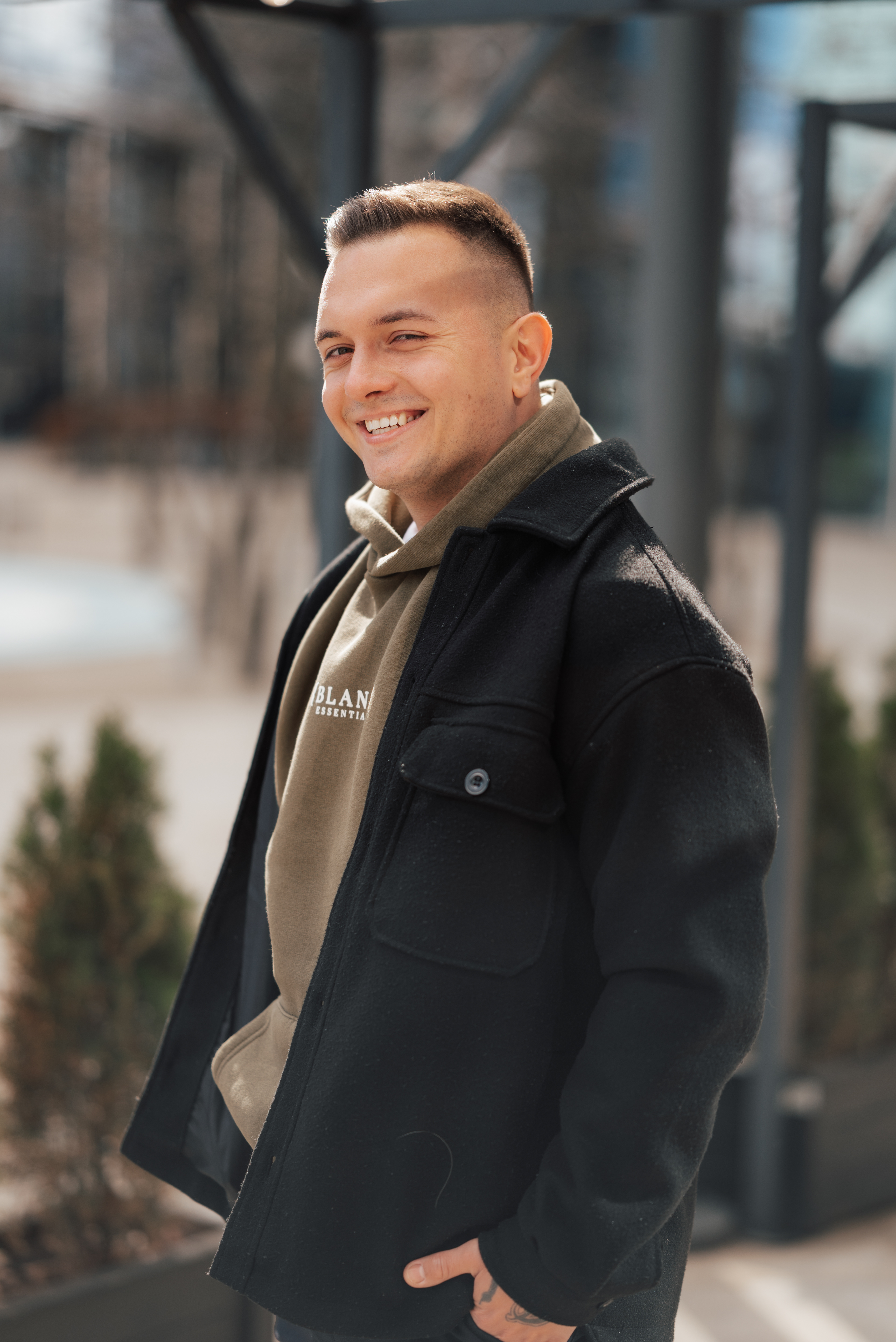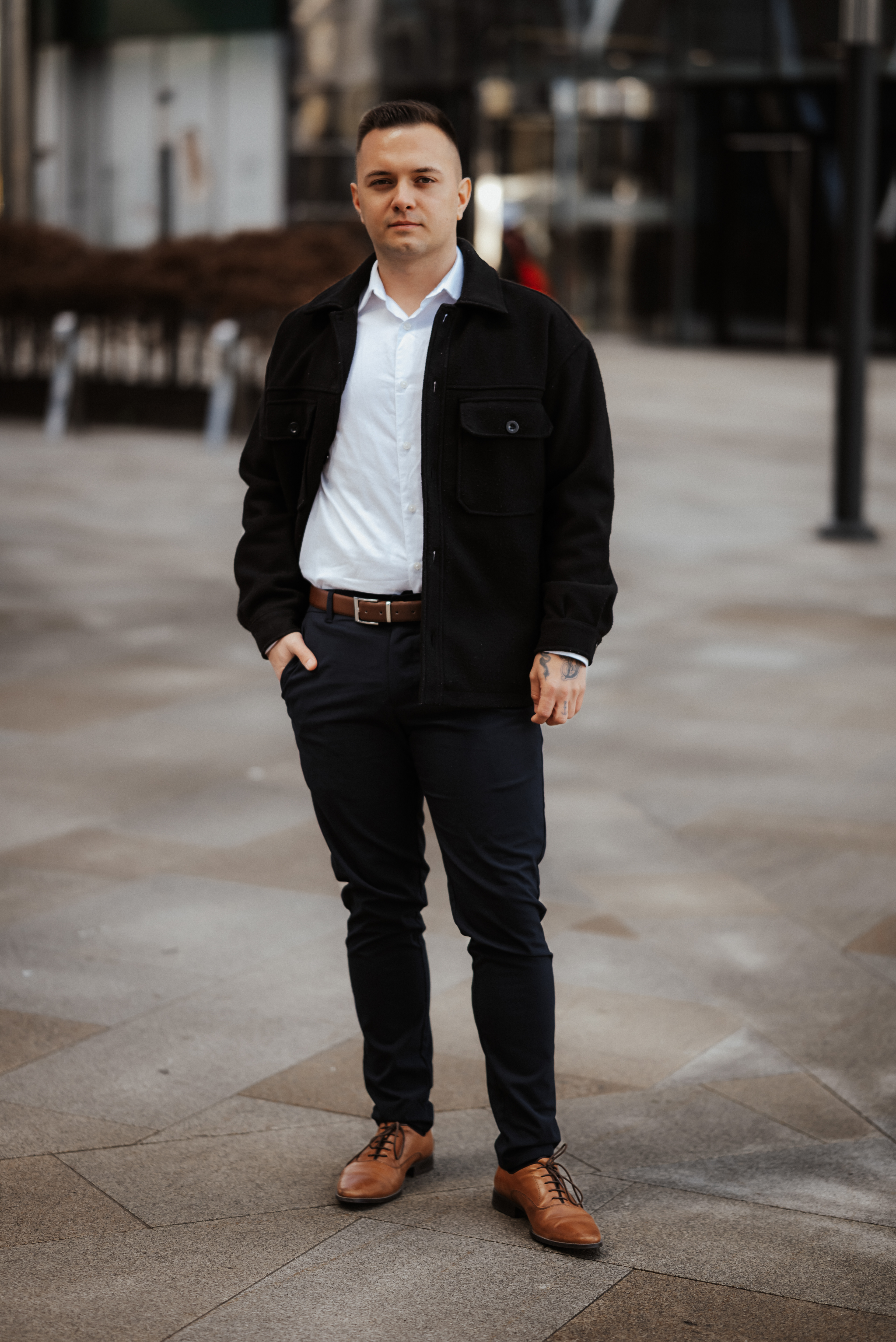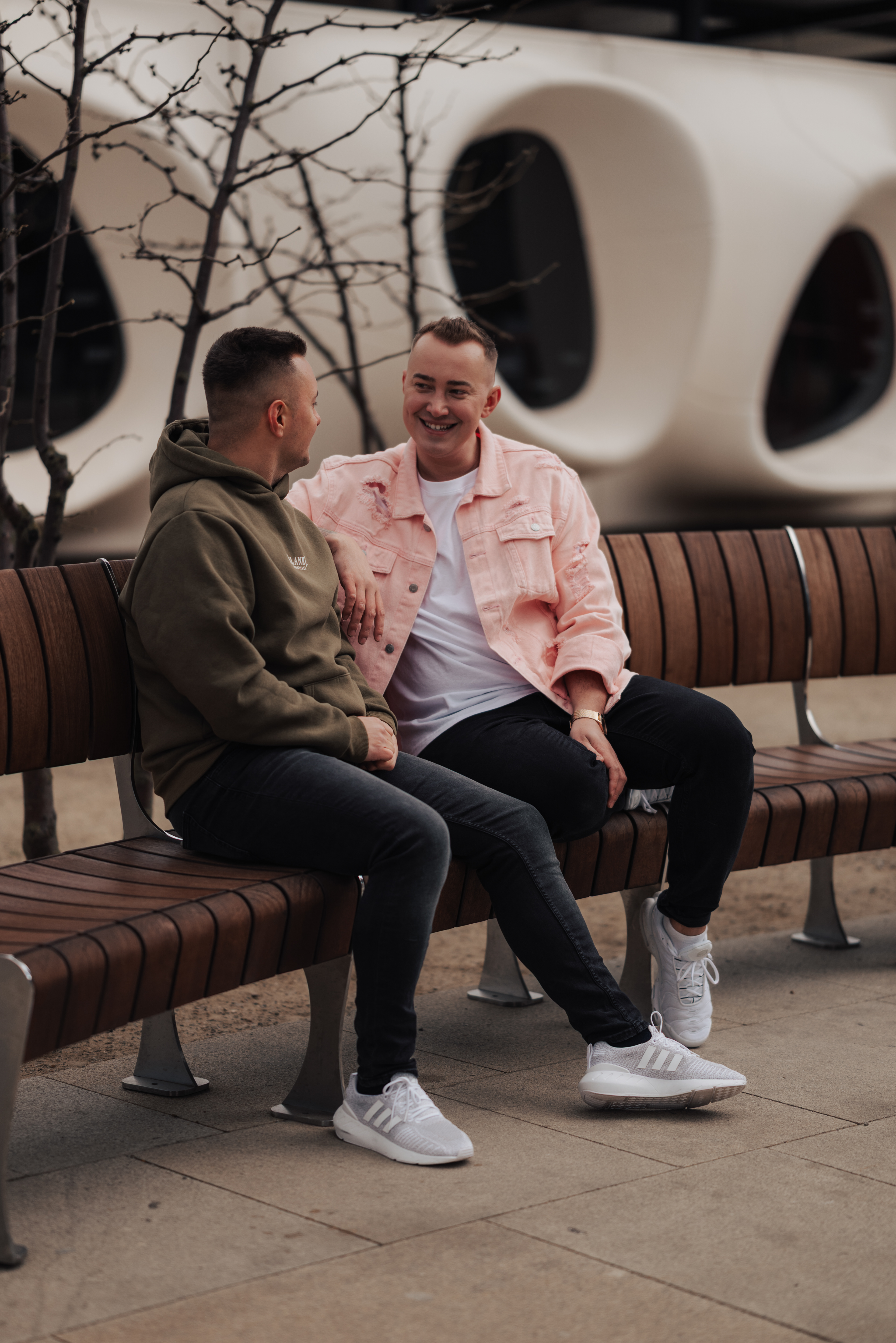 Niektóre spotkania zostają z człowiekiem na dłużej – i właśnie tak było z Ernestem i Dawidem. Luźna, naturalna sesja w samym sercu Warszawy, na Woli – pośród szklanych wieżowców, zimnego wiatru i zbliżającej się burzy z gradem (!), ale ciepła i bliskości między nimi nie dało się nie zauważyć.