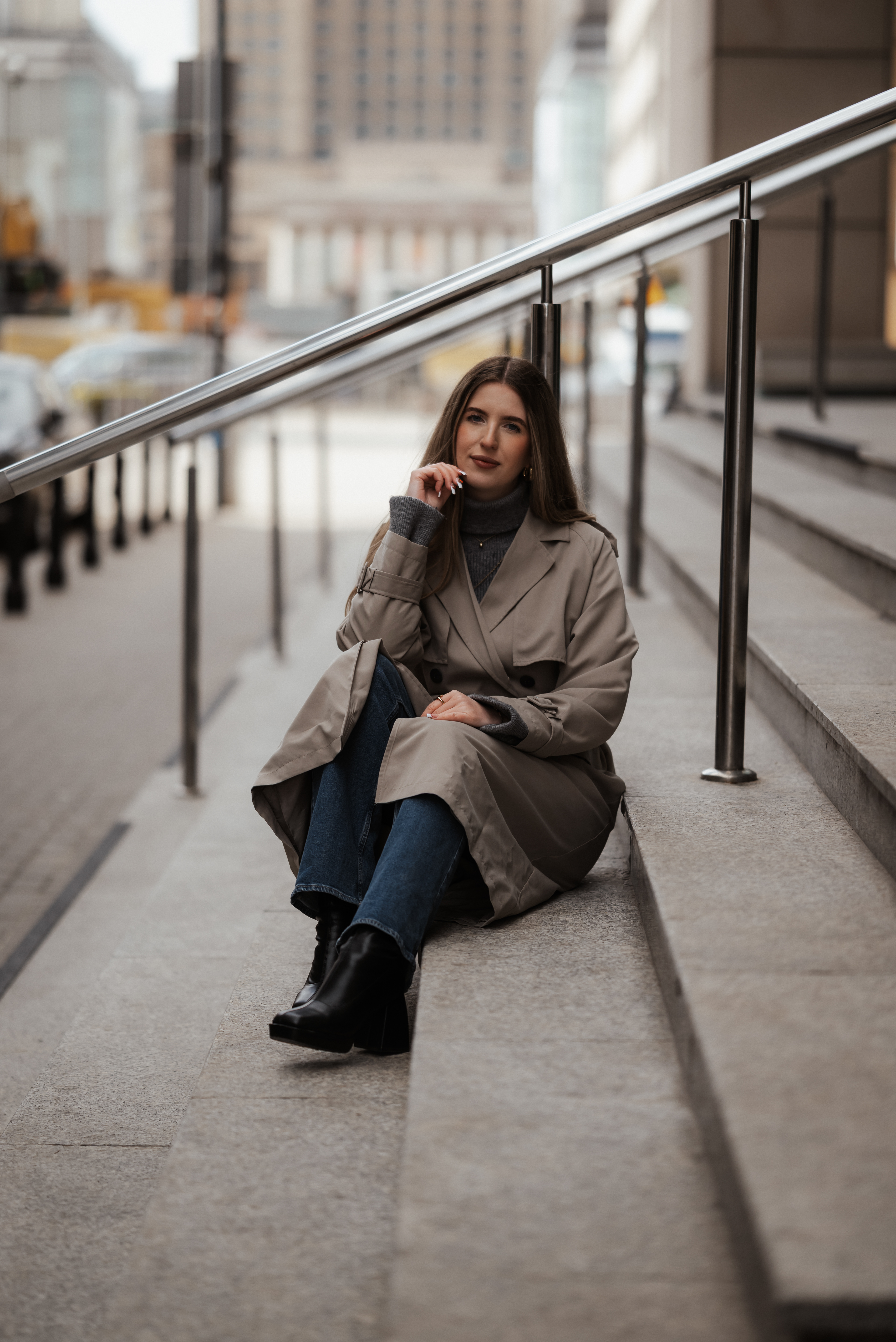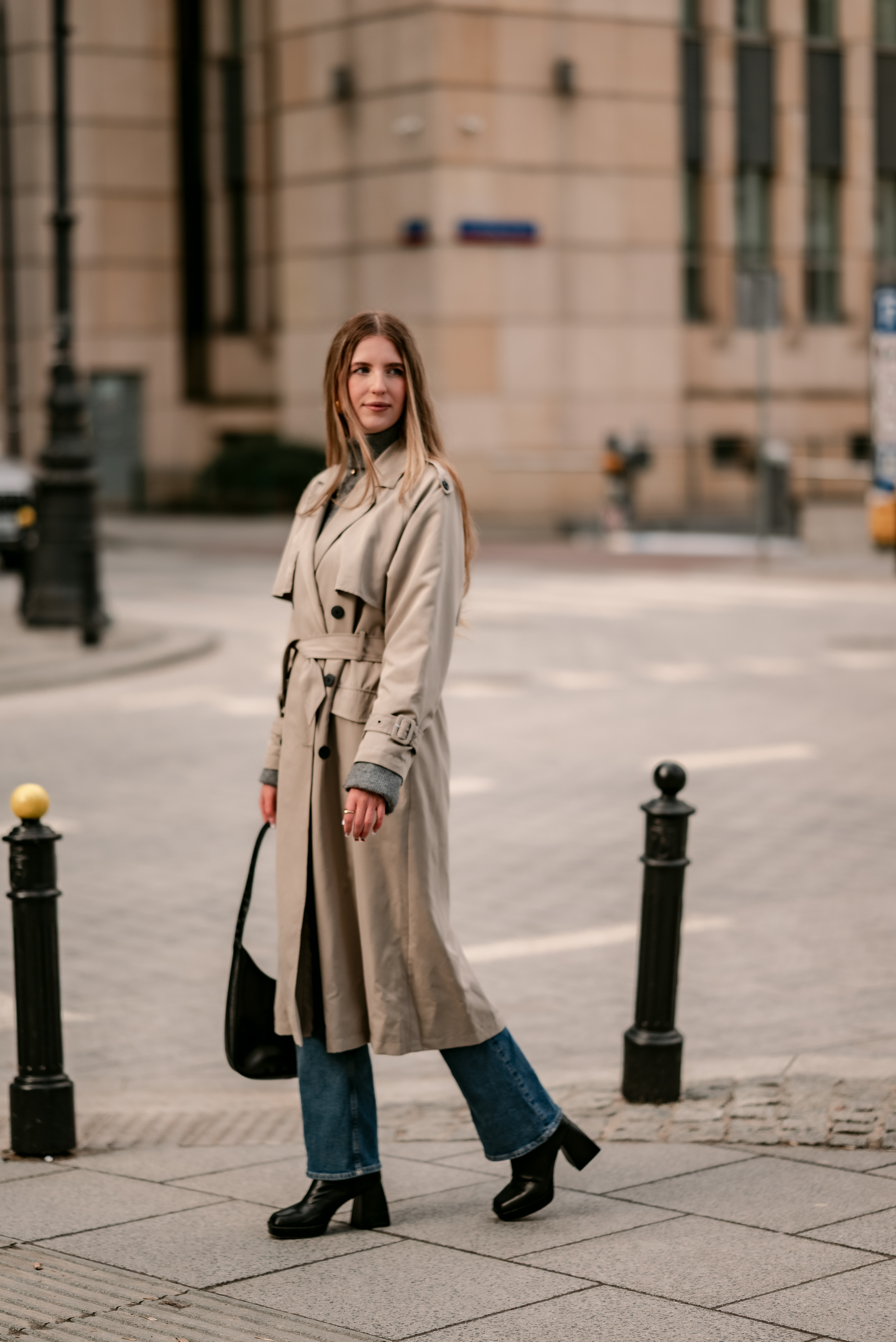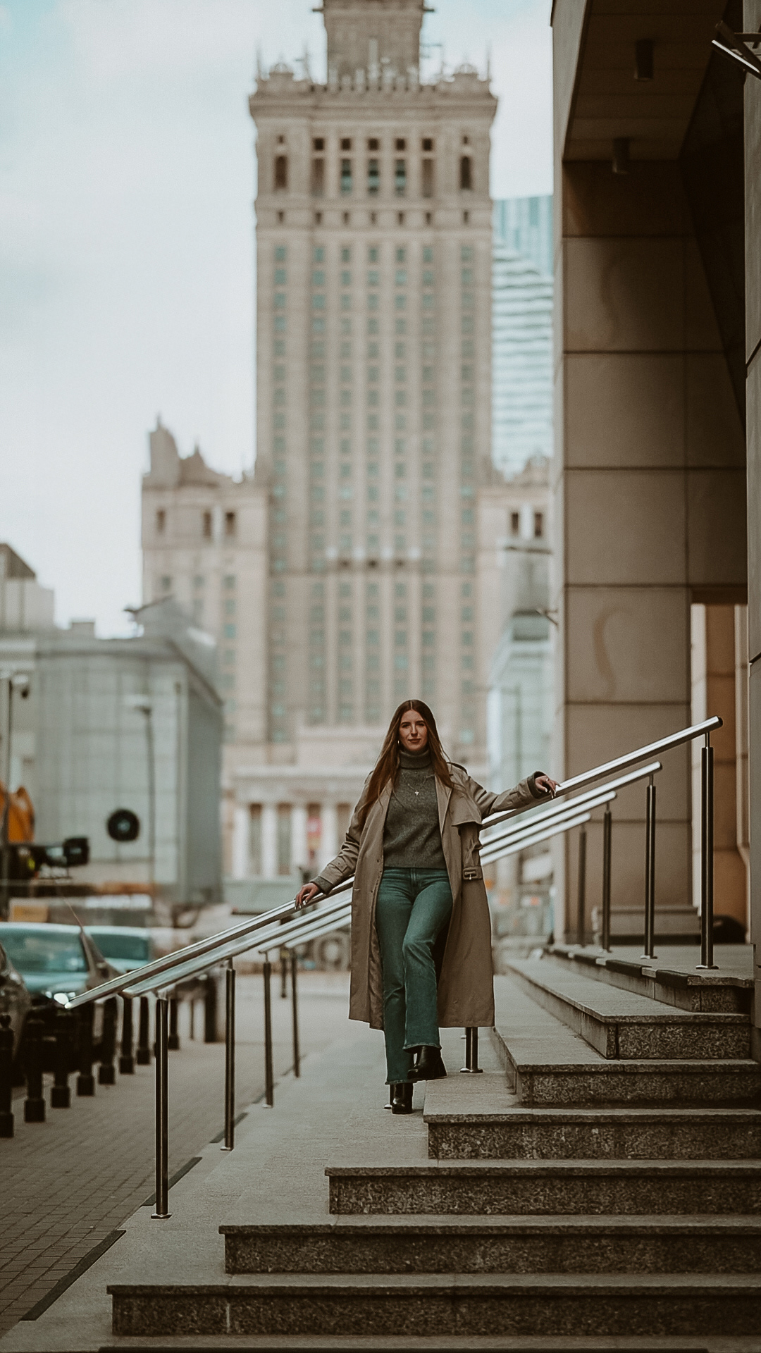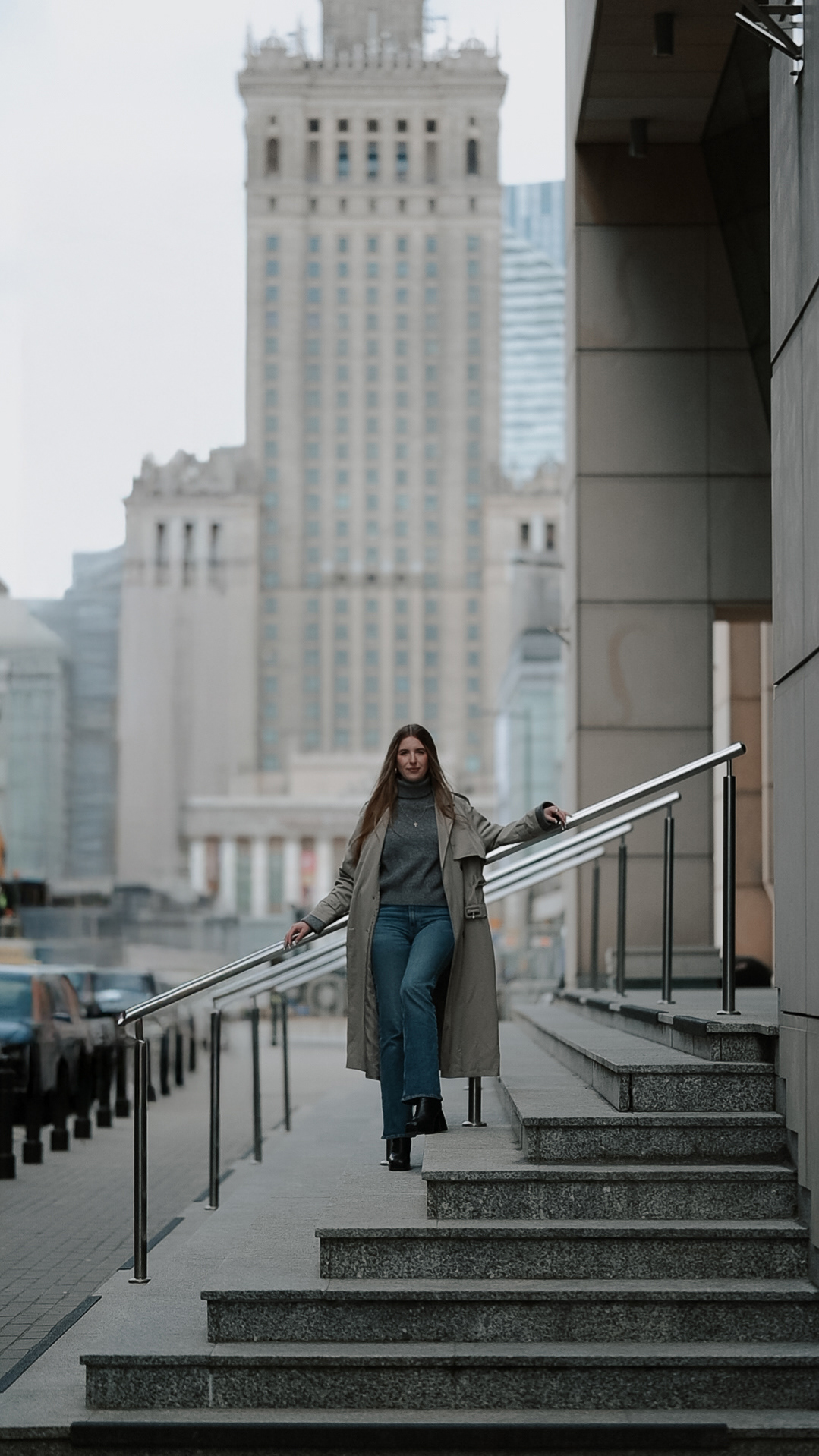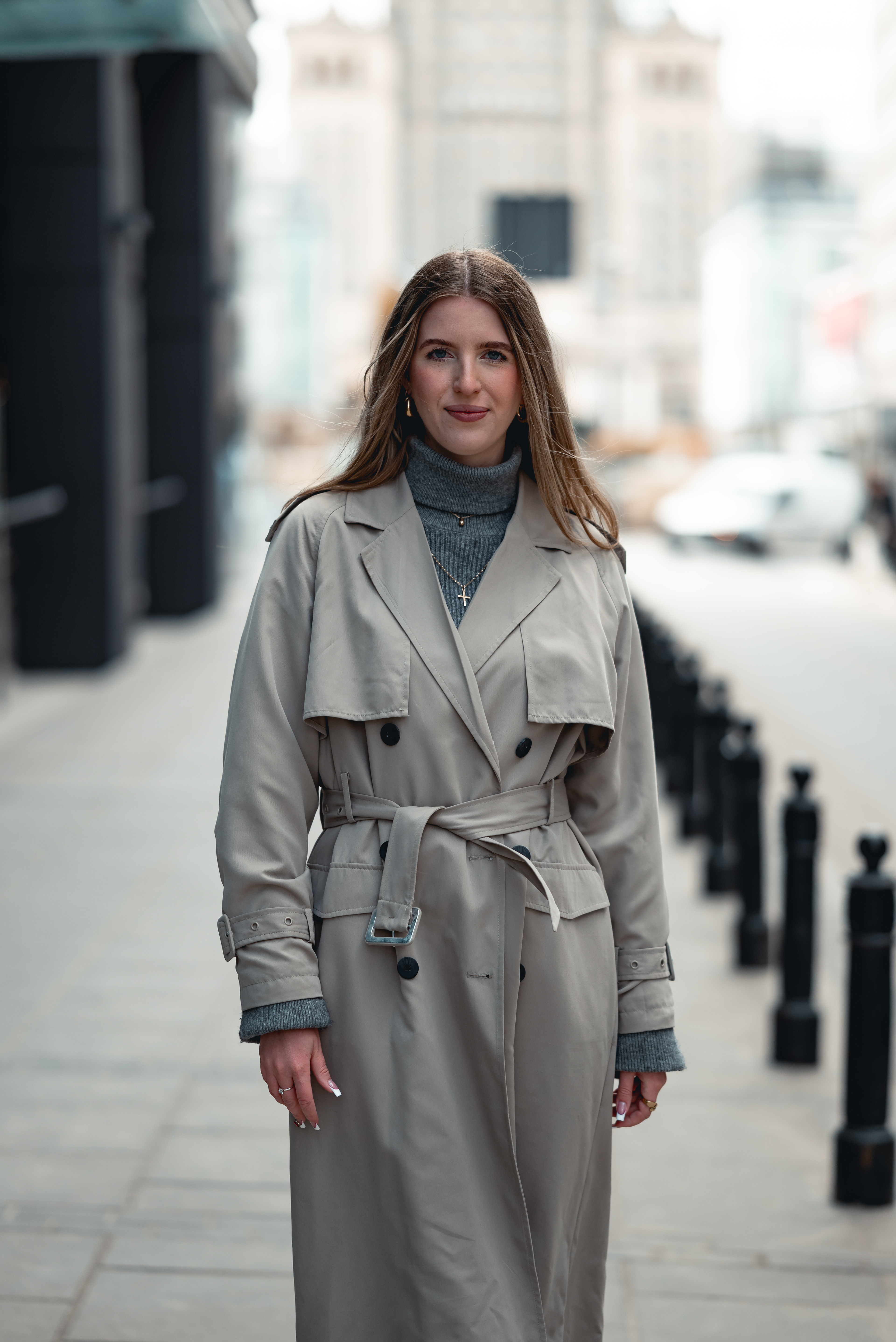 Warszawa w tle? Nieprzypadkowa. Surowa, monumentalna, a jednocześnie znajoma. Lubię zestawiać ją z kobiecą wrażliwością.
